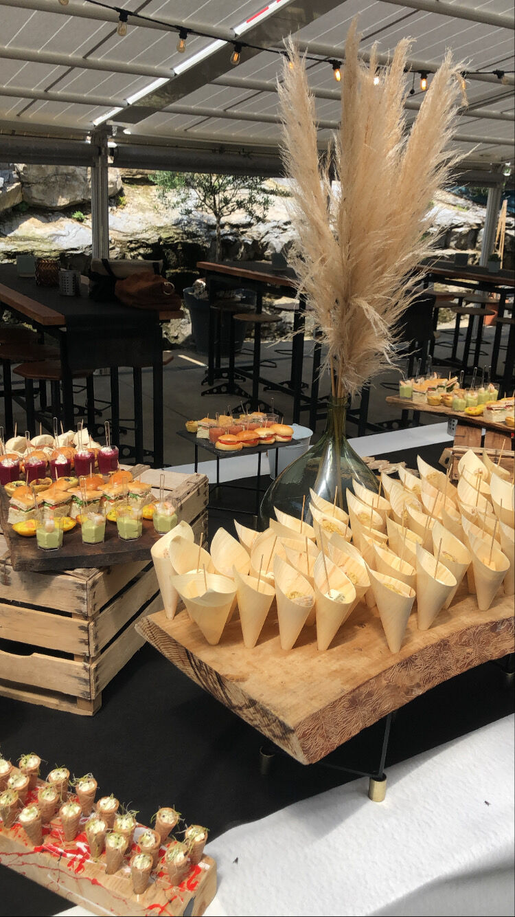 En proposant différents buffets sucrés/ salés, nos produits locaux tout au long de la saison.